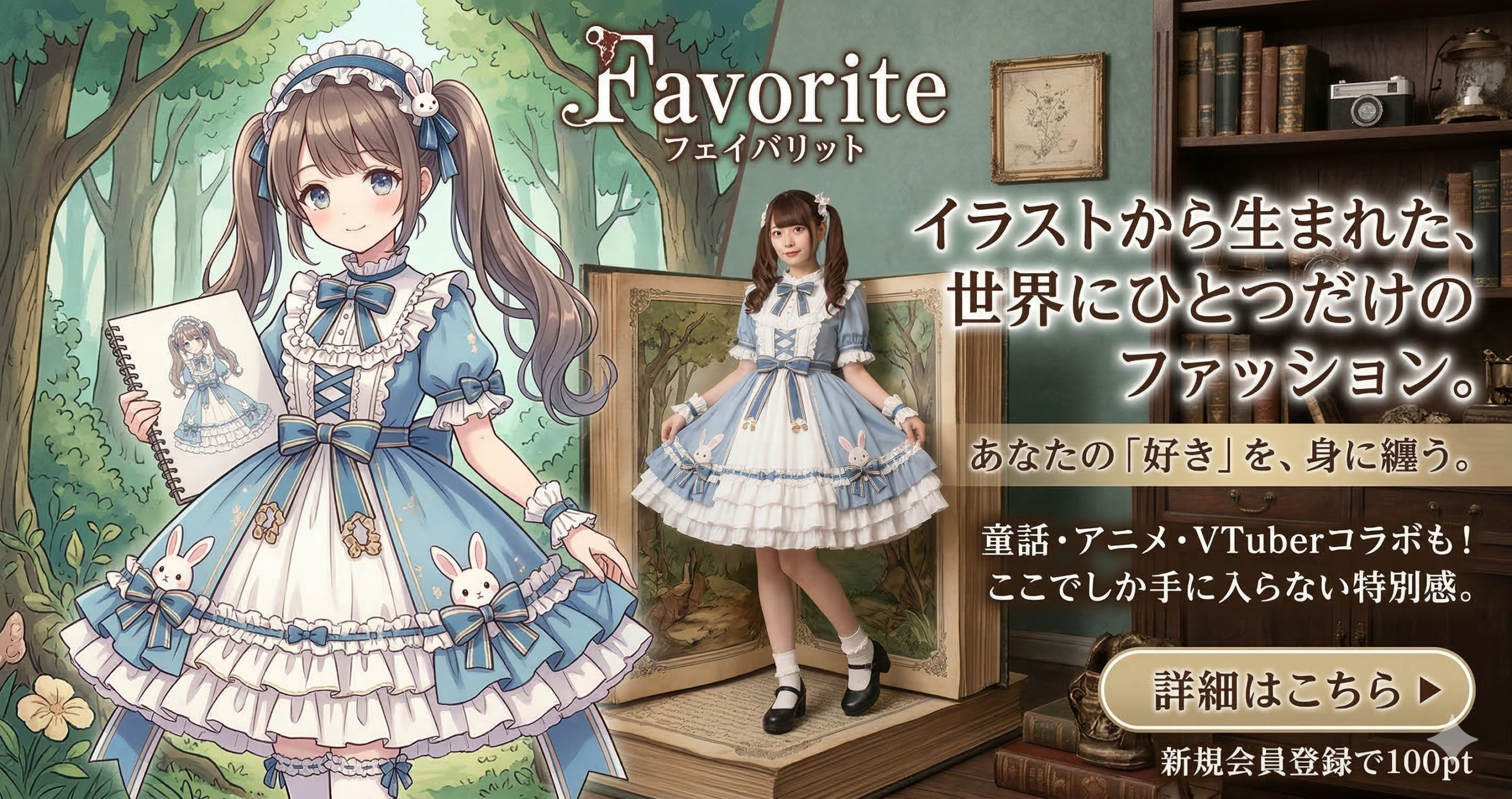 イラストをそのまま服にする独自コンセプト・人気クリエイター×アニメ×VTuberとの豊富なコラボ・予約受注生産による希少性・公式Xフォロワー26万人の圧倒的SNS影響力・新規登録100pt特典 ── これだけの魅力が揃ったファッションブランドは、Favoriteだけです。