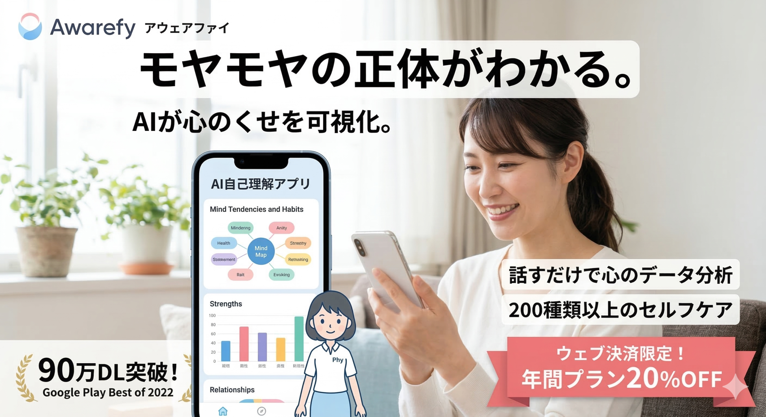 この記事では、Awarefyの特徴・機能・料金・実際の口コミまで徹底的にまとめました。「もっと自分らしく、楽に生きたい」という方は、ぜひ最後まで読んでみてください。
