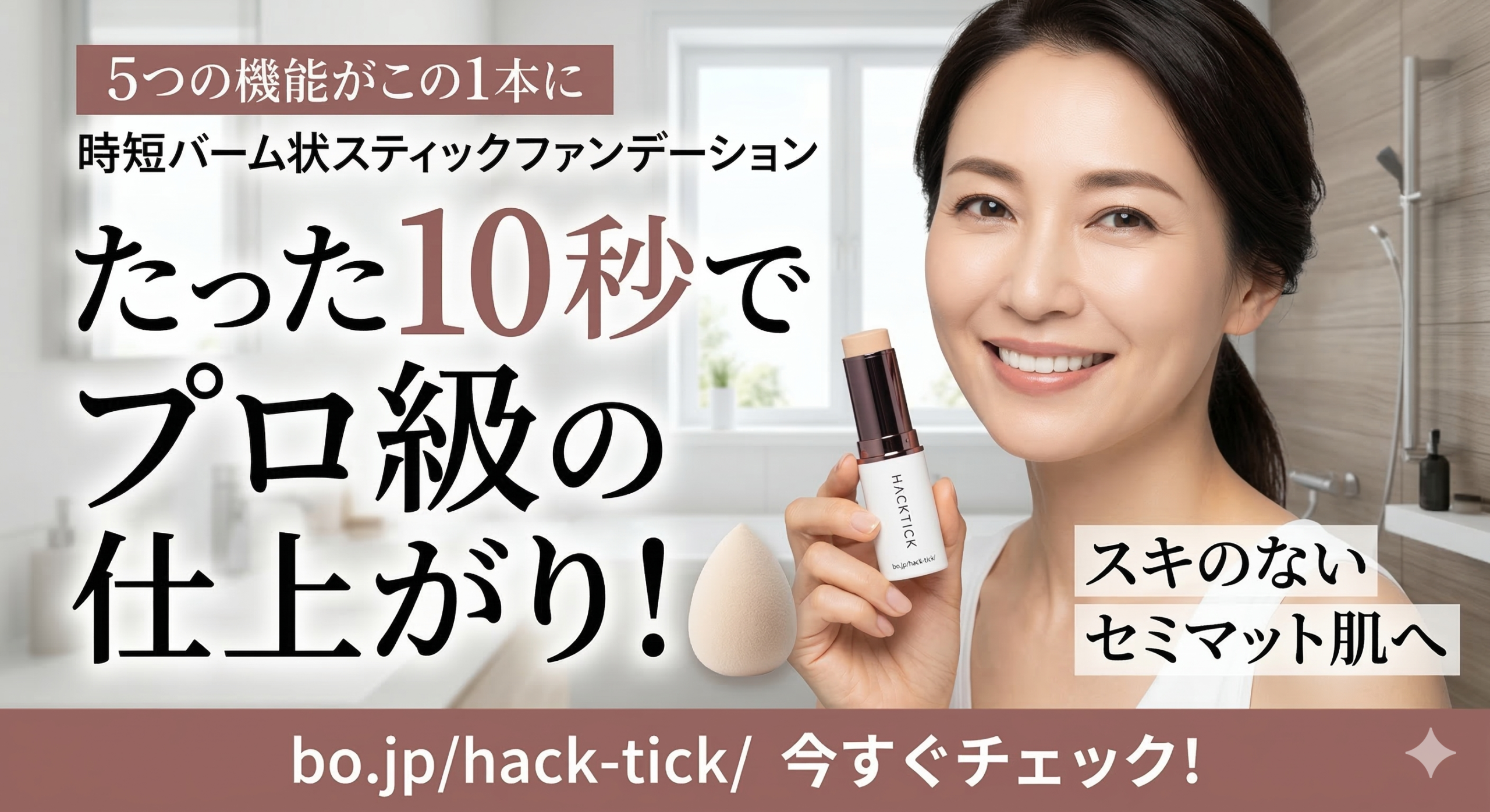 40代・50代の大人女性なら、こんな悩みを毎朝感じていませんか?そんな方にぜひ知っていただきたいのが、たった10秒でプロ級のセミマット肌が完成するバーム状スティックファンデーション「ハックティック」です。