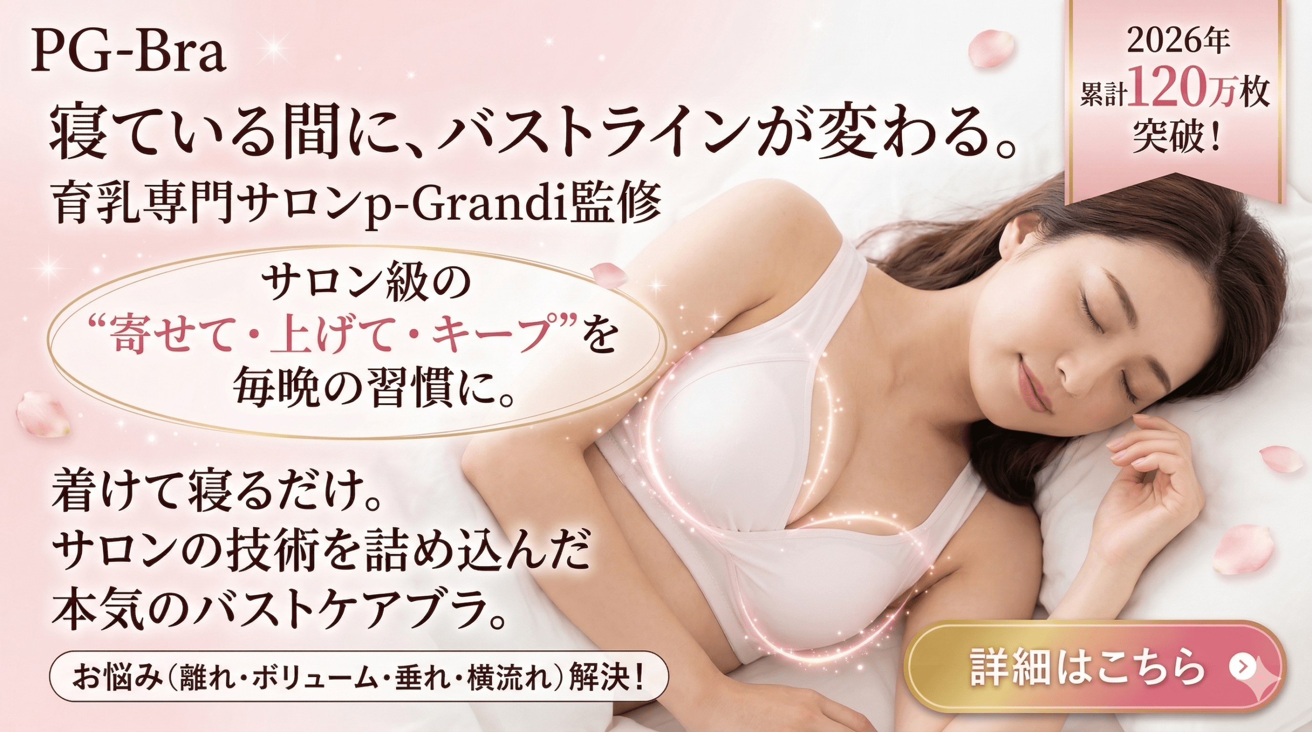 そんな方にぜひ知っていただきたいのが、2026年累計120万枚突破・バスト専門サロン監修・着けて寝るだけでバストラインが整う話題のナイトブラ「PGブラ(PG-Bra)」です。