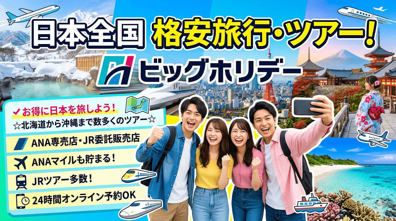この記事では、ビッグホリデーの特徴・格安の理由・人気ツアー・実際の口コミまで徹底的にまとめました。コスパよく旅行を楽しみたい方は、ぜひ最後まで読んでみてください。