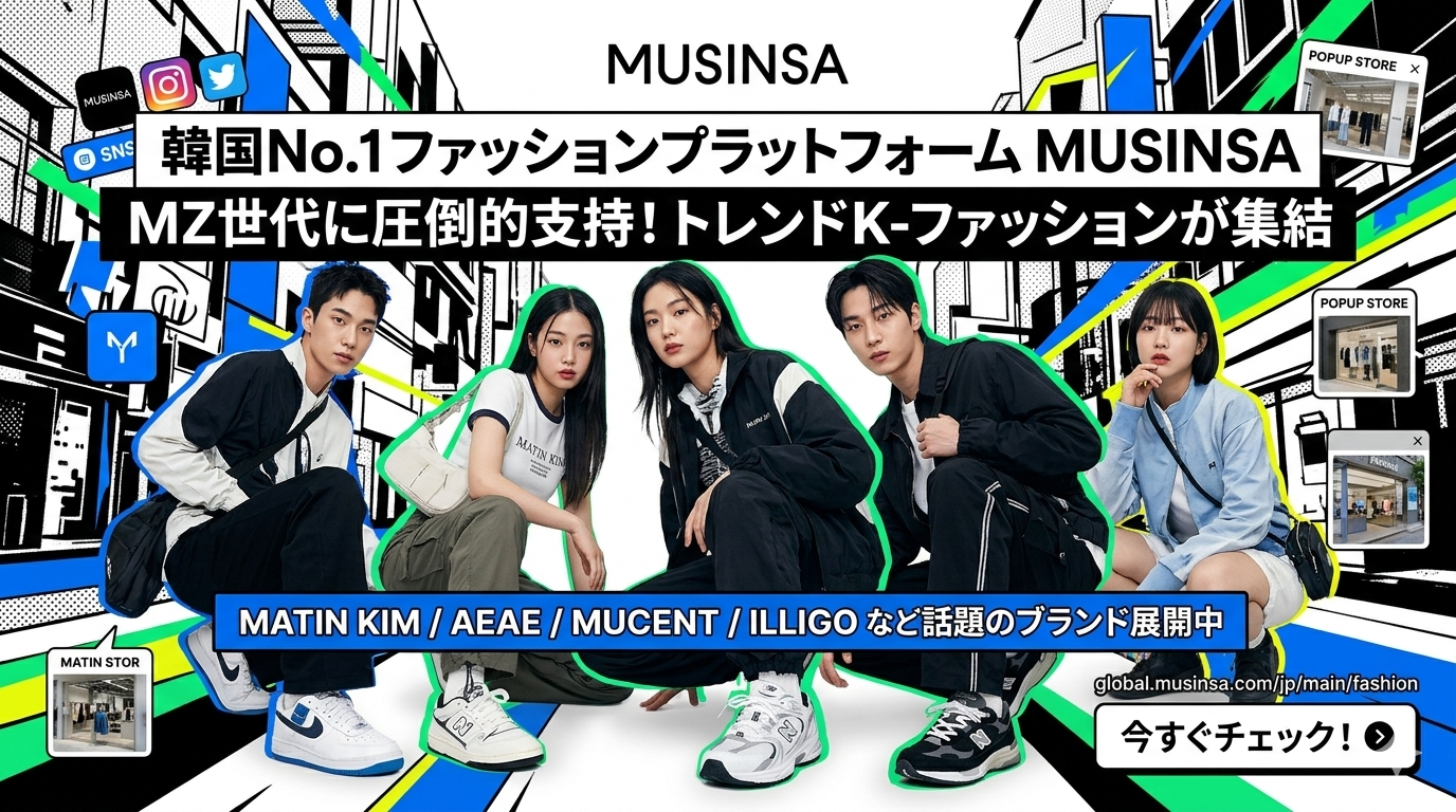 「韓国版ZOZOTOWN」とも称されるMUSINSAは、単なるECサイトにとどまらず、ファッションコミュニティ・コンテンツ制作・オフライン店舗・ポップアップイベントを融合した独自のエコシステムを構築。日本では2022年からグローバルストアをオープンし、2026年には東京に初の常設オフライン店舗オープンも予定されています。