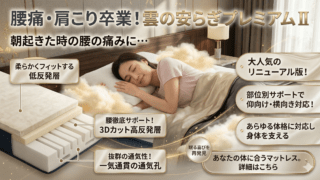 【腰痛・肩こりに悩む方へ】雲のやすらぎプレミアム マットレスⅡの特徴・口コミ・100日保証を解説